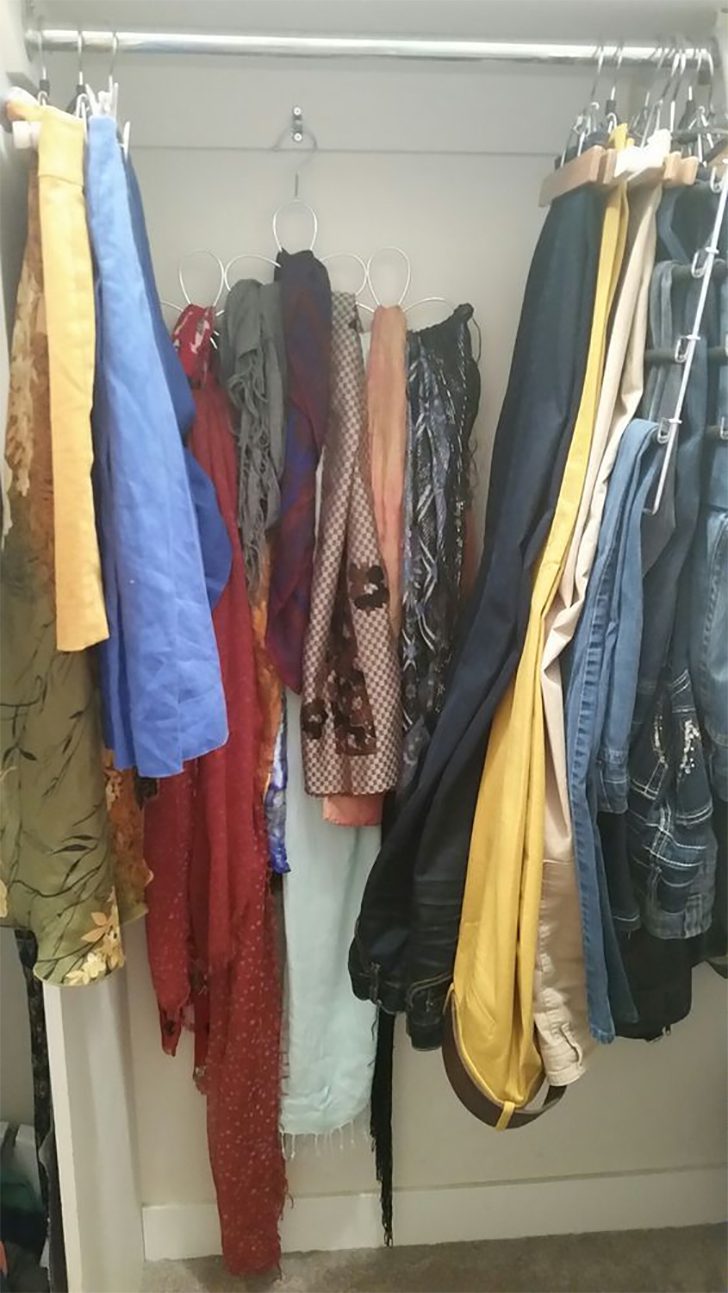 Installing a few sturdy clips behind a closet door or on the back wall unleashes a host of storage possibilities beyond just clothing. These clips are perfect for hanging accessories like scarves and belts or lightweight items like jewelry and hats.