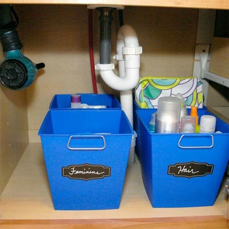 Labeling each bin according to its contents simplifies finding what’s needed quickly. This organizational strategy not only clears up clutter but also makes the under-sink area a model of efficiency, streamlining the process of maintaining a tidy and functional home.