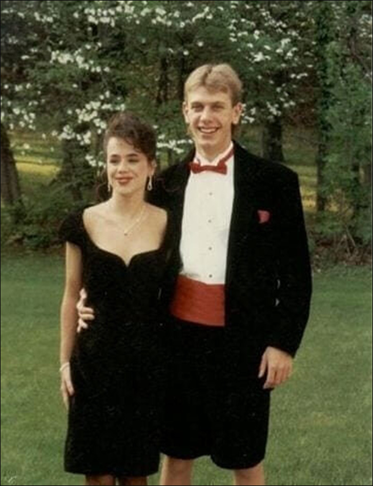 Outdoors, a young couple poses for a pre-event picture. The young woman radiates elegance in a classic black dress while her date stands beside her in a tuxedo jacket, white shirt, and red cummerbund. What’s the twist? He’s paired it all with black shorts. This ridiculous fashion choice turns an ordinary prom photo into a viral hit.